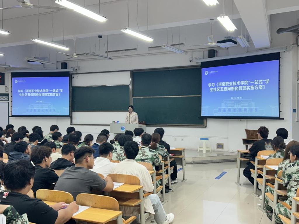 9月17日晚,电子与物联网学院组织2025级全体新生开展“增强安全意识遵守校规校纪”学习会暨“一站式”学生社区五级网格化管理实施方案学习会。活动旨在帮助新生尽快适应大学环境,树立安全意识、纪律意识,培养自我管理能力。培训会由新生辅导员连宇昆、冯冬月主持。