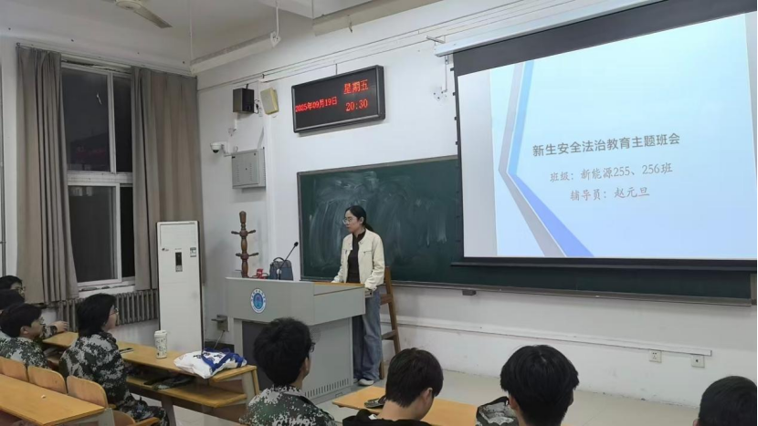 班会上,各班级辅导员紧扣“知法、懂法、守法、用法”核心目标,以贴近学生生活实际为导向,精心筛选校园欺凌、网络言论规范、交通安全等与青年学子息息相关的典型案例。活动打破传统法律知识宣讲模式,通过“身边事讲法、真实案释法”的形式,将抽象的法律条文转化为鲜活的情境解读,让同学们在沉浸式体验中直观感受法律的刚性约束与温度内涵。同时,引导大家主动思考、互动讨论,重点学习“遇到类似问题时如何运用法律武器维护自身合法权益”,切实提升法治实践能力。