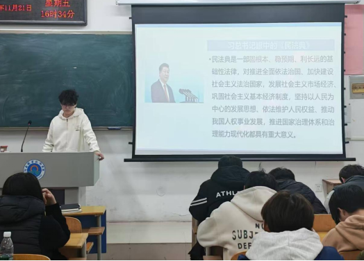 此次班会以学习《中华人民共和国民法典》为核心,紧密结合学生日常学习生活场景,重点围绕校园权益保护、网络行为规范、兼职维权等与学生切身相关的法律问题讲解。班会中,各班辅导员作为主讲人,系统梳理了《中华人民共和国民法典》中与大学生密切相关的条款,如个人信息保护、合同签订注意事项、校园侵权责任认定等内容。辅导员们通过分享校园网贷纠纷、兼职劳务报酬争议等典型案例,深入浅出地解析法律要点,帮助学生明确行为边界,树立“遇事找法、解决问题靠法”的法治思维。