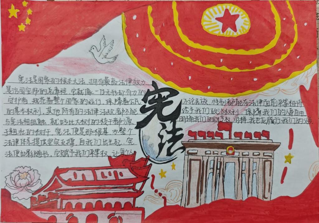 结合学院专业特色,学院鼓励学生利用新媒体技术参与宪法宣传。同时组织学生创作以宪法为主题的手抄报等作品。